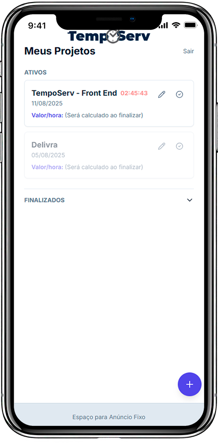Criado para freelancers, agências e profissionais autônomos, o TempServ é a ferramenta definitiva para transformar seu tempo em valor real. Monitore projetos ilimitados com precisão e tenha uma visão clara de onde suas horas são investidas para tomar decisões mais inteligentes.